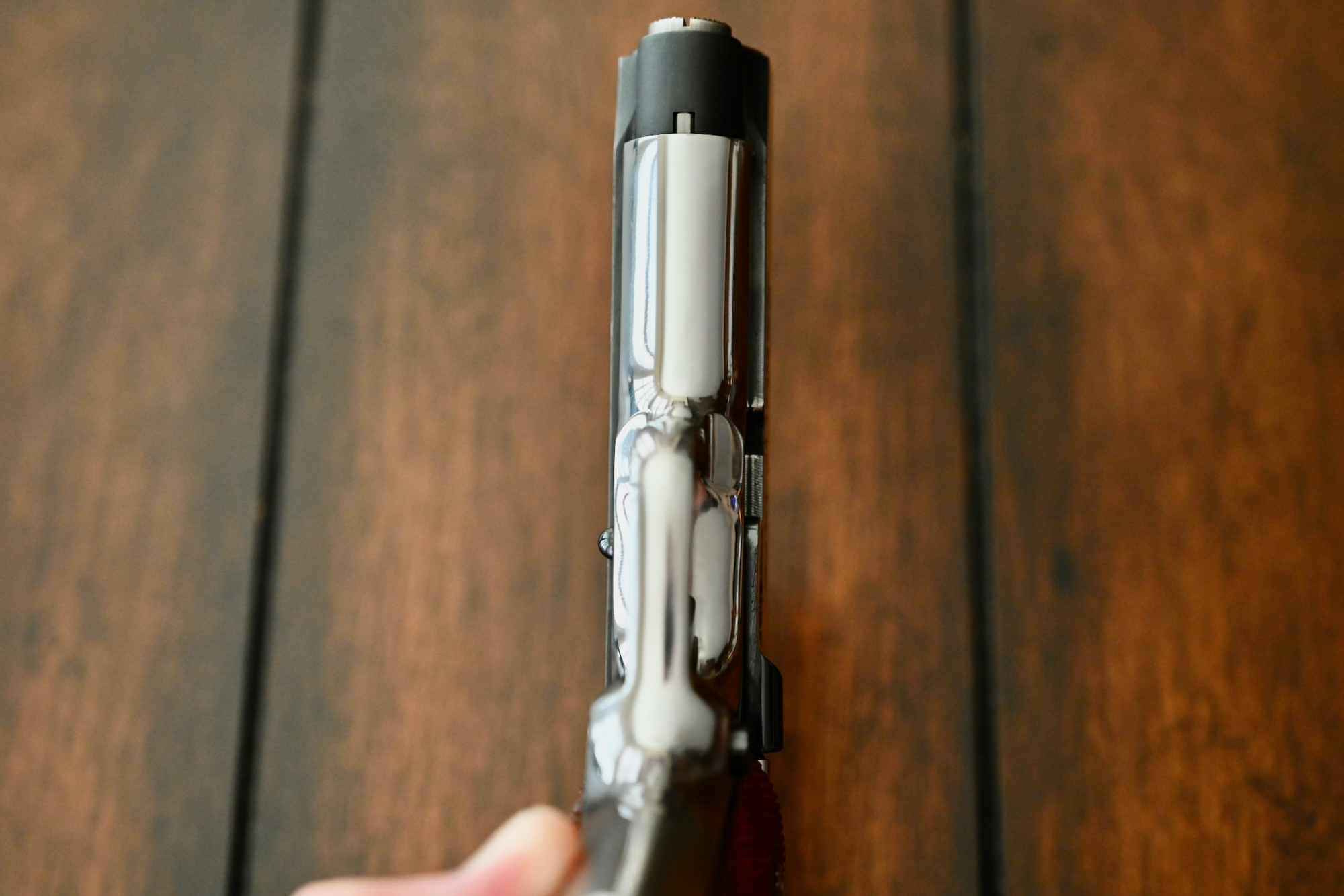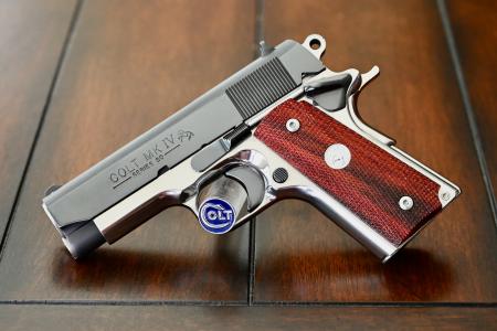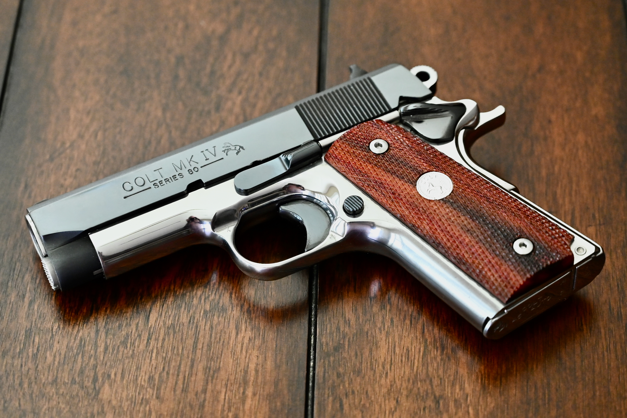 Featuring a 3.5” barrel, and a mirror-like bright stainless steel frame w/ a polished blue slide, it is one of the prettiest short-barreled Colt autos that you will ever see. The contrasting bright stainless and high polished blued finish, really creates a striking visual contrast, and certainly highlights Colt’s craftsmanship. The compact design is based on the Officer’s ACP, a shortened version of Colt’s iconic Government Model 1911, which makes it an excellent choice for concealed carry, or as a distinguished collector’s item.