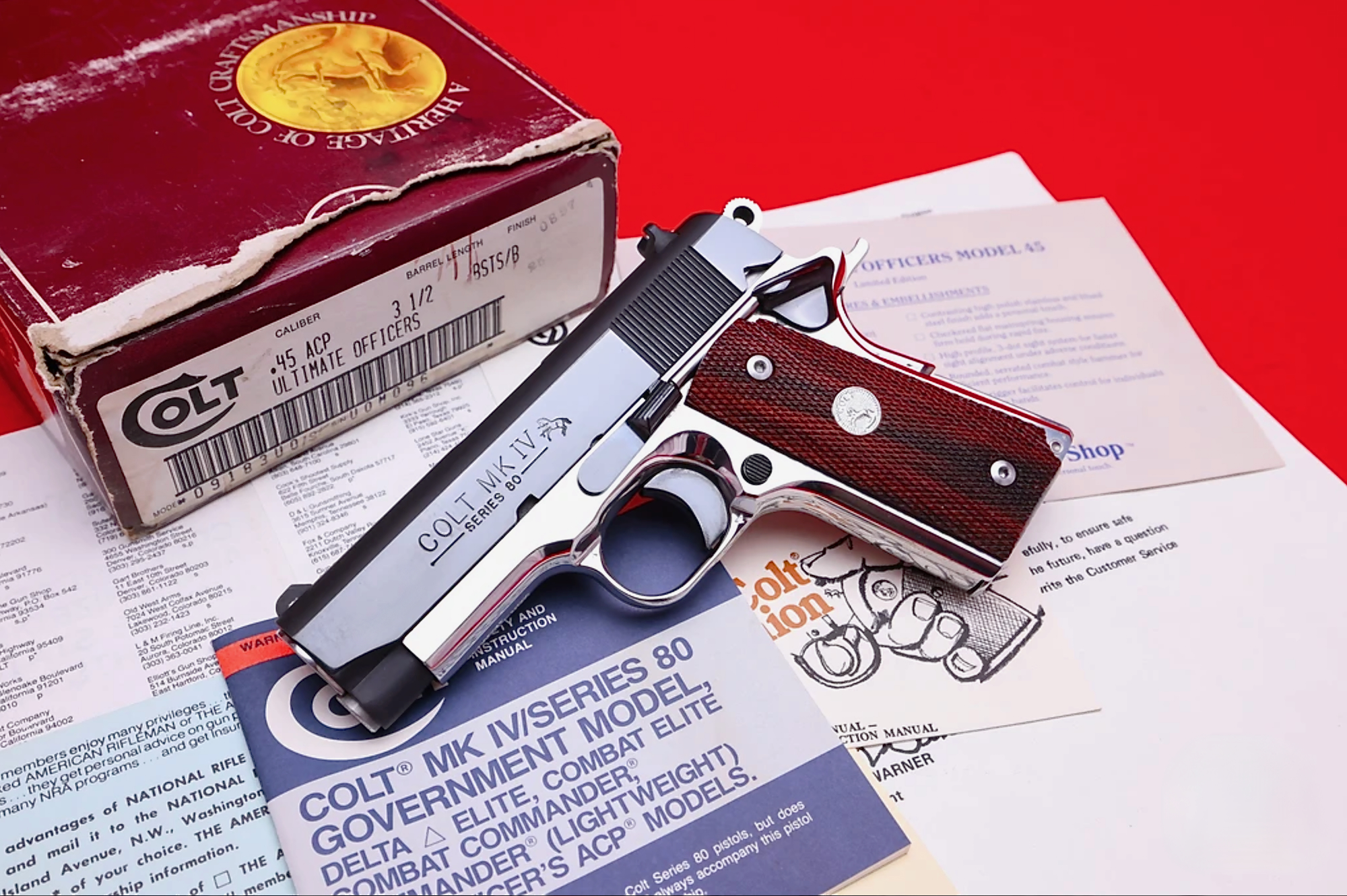 If you are a collector of high-end vintage Colt handguns, especially limited-ediiton models, you will want to take a very close look at this beautiful 1989 Colt MKIV Series 80 Ultimate Officers .45 ACP Limited Edition pistol.