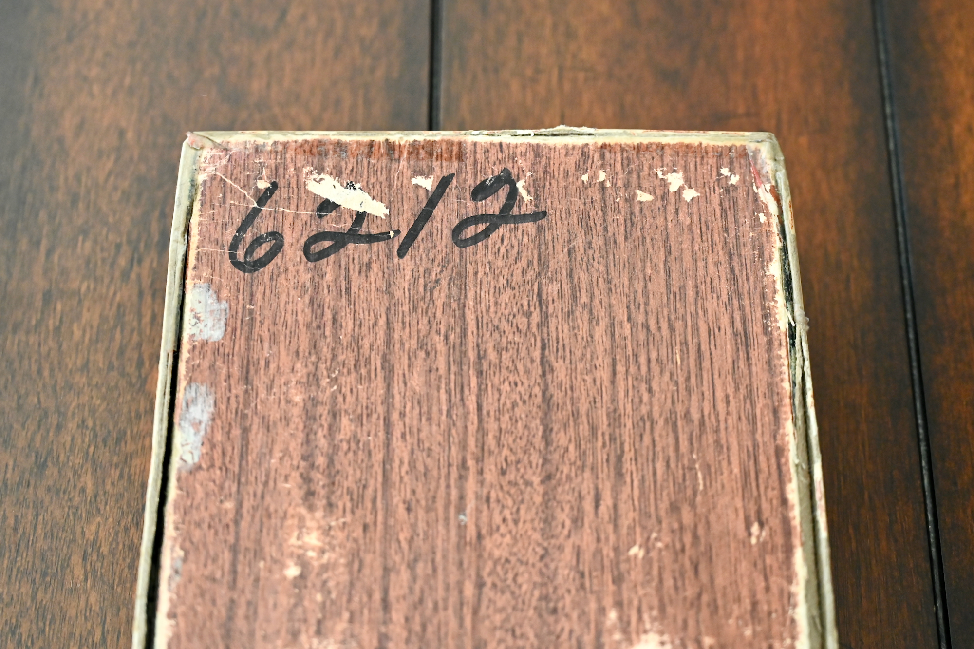 As mentioned previously, the package includes the factory original Colt two-piece faux woodgrain box, which is numbered to the gun (shows some storage wear and tape repairs), the original Colt warranty booklet, the original ‘Handling the Handgun’ brochure, as well as the original Engelhardt signed test target.