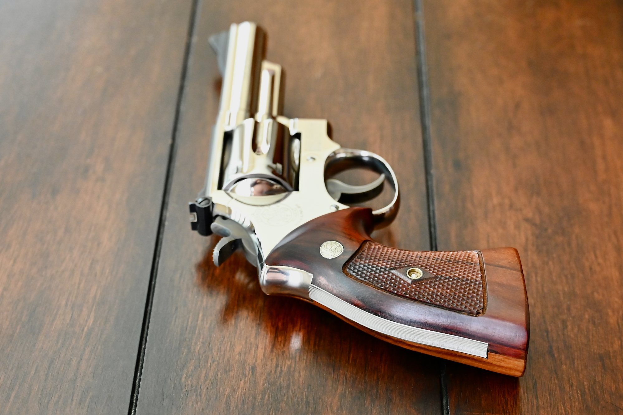 Again, if you collect vintage Smith & Wesson pistols, especially big-bore nickel guns, you will want to take a very close look at this gorgeous 1960 Smith & Wesson Model 19 .357 Combat Magnum 4” Nickel revolver!