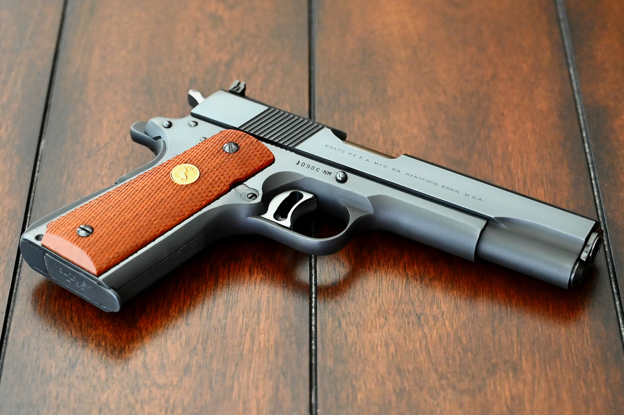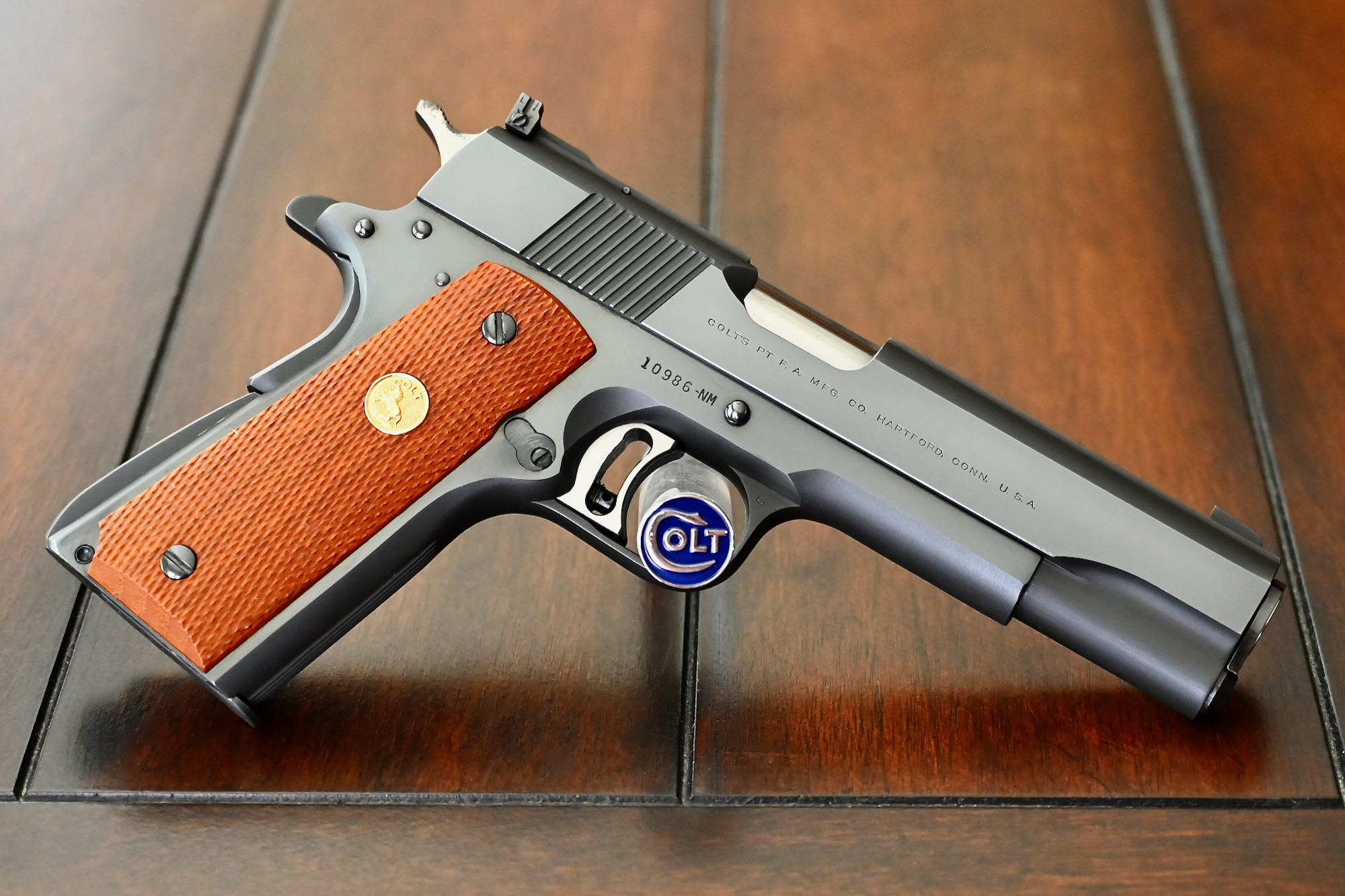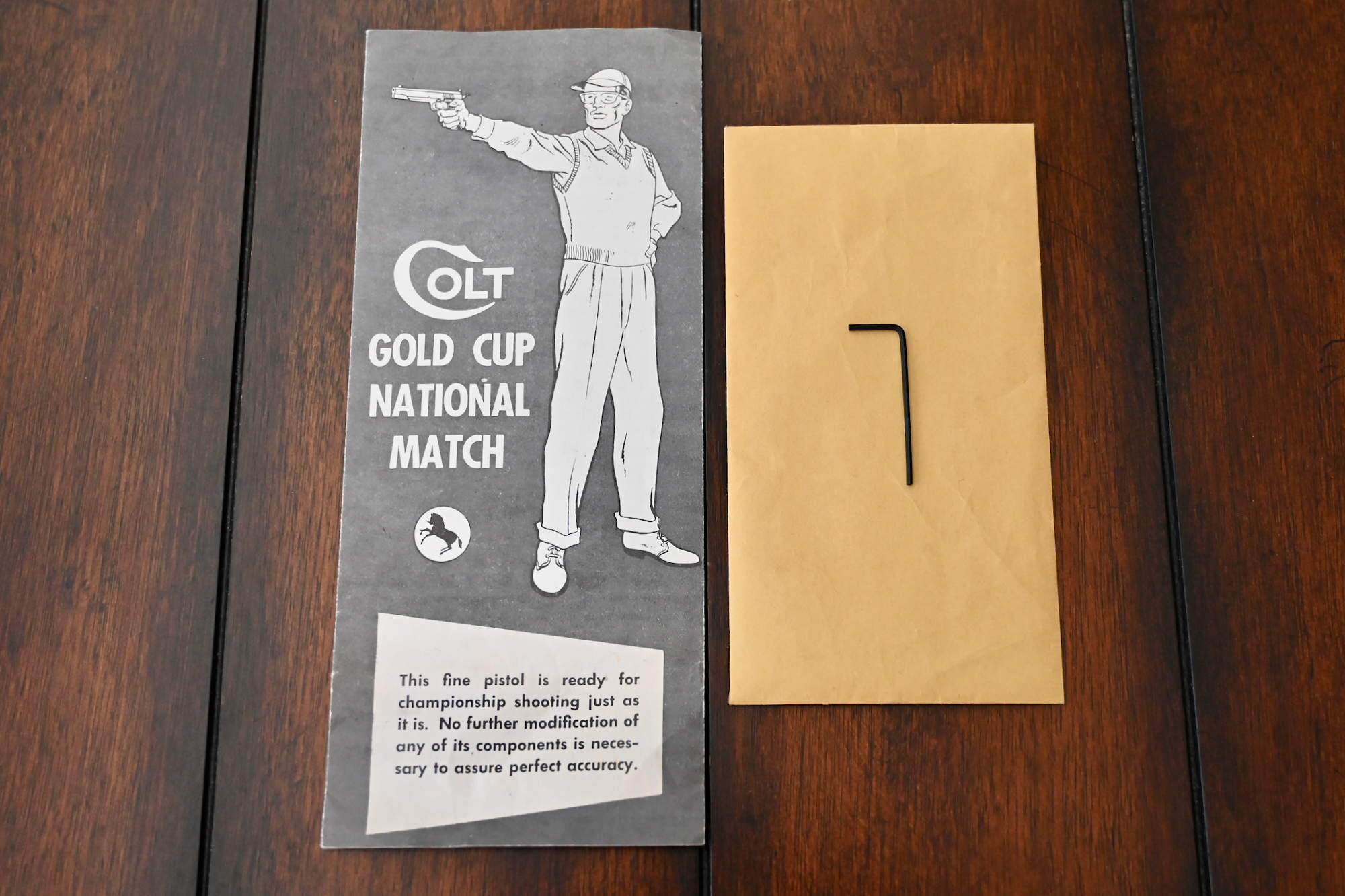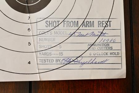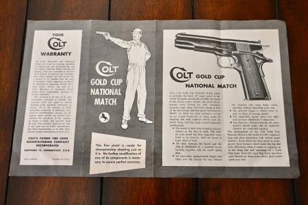 The package comes complete w/ the original two-piece Colt Gold Cup NM box, the original Colt Gold Cup NM owner’s brochure, the original allen wrench, and last but certainly not least, the signed factory test-target.