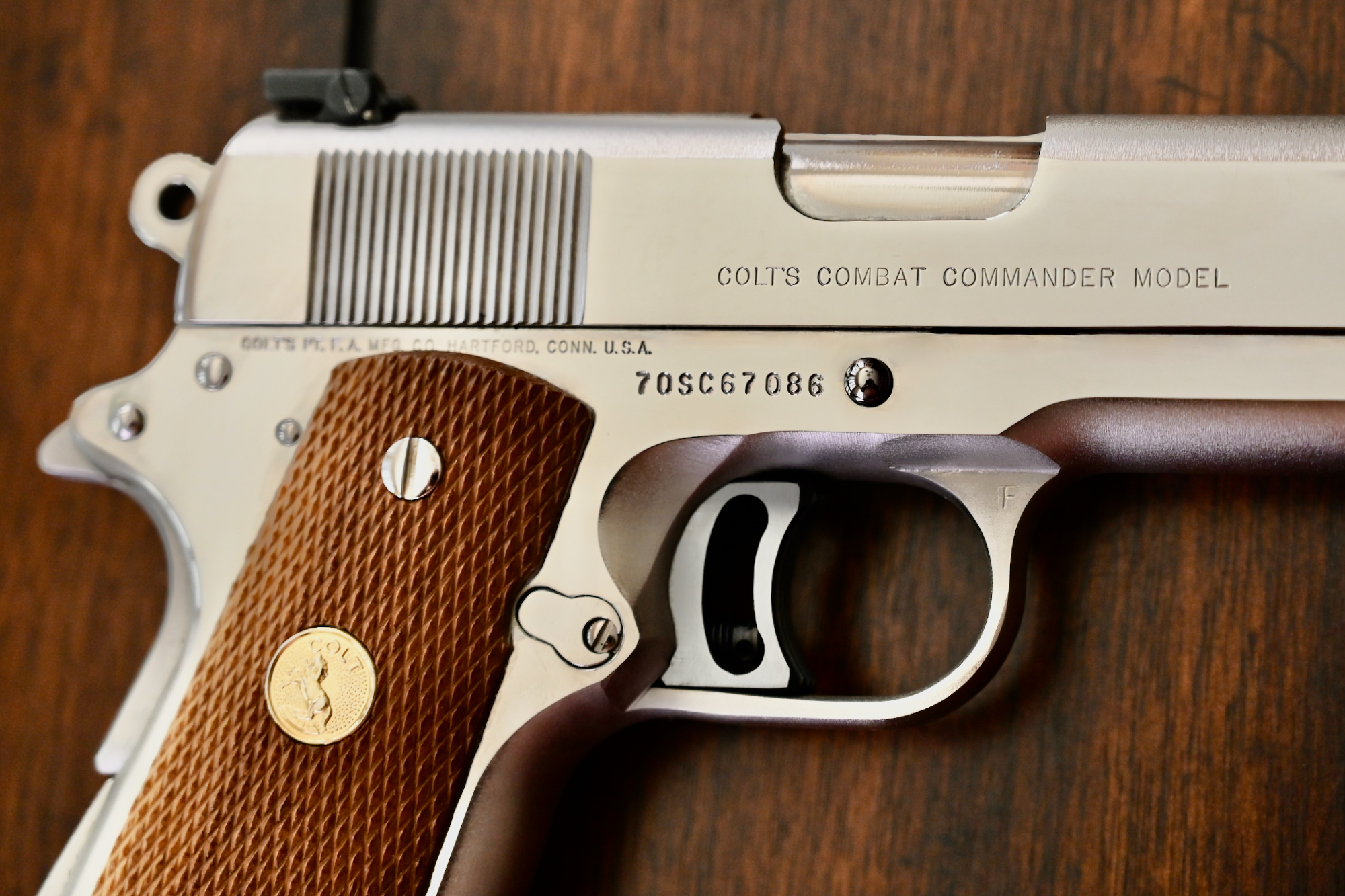 If you are a collector of Colt Custom Shop guns, especially from the early years, you will want to take a very close look at this gorgeous & highly desirable 1979 Colt Combat Commander Series 70 1911 .45ACP pistol.